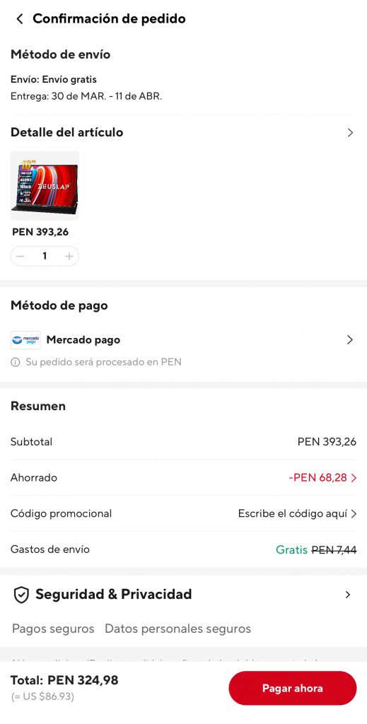 Para lograr este precio del monitor, tenemos que seguir los siguientes pasos: